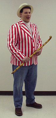 Red and white striped blazer, red, white and blue skimmer hat OPTIONS: Hat-$10.00