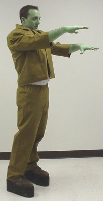 Dark lime green jacket and pants, shoulder padding & size 10 1/2 platform boots
