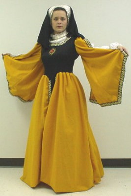 Yellow nd black long dress, black crinolin and headpiece