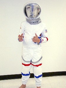 White jumpsuit with trim, gloves and space helmet